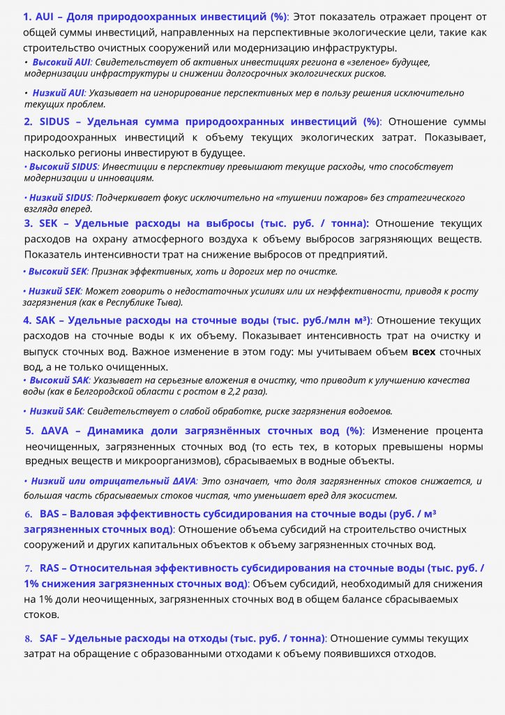 Для всестороннего анализа был введен ряд ключевых показателей, характеризующих как инвестиционные, так и текущие экологические расходы: